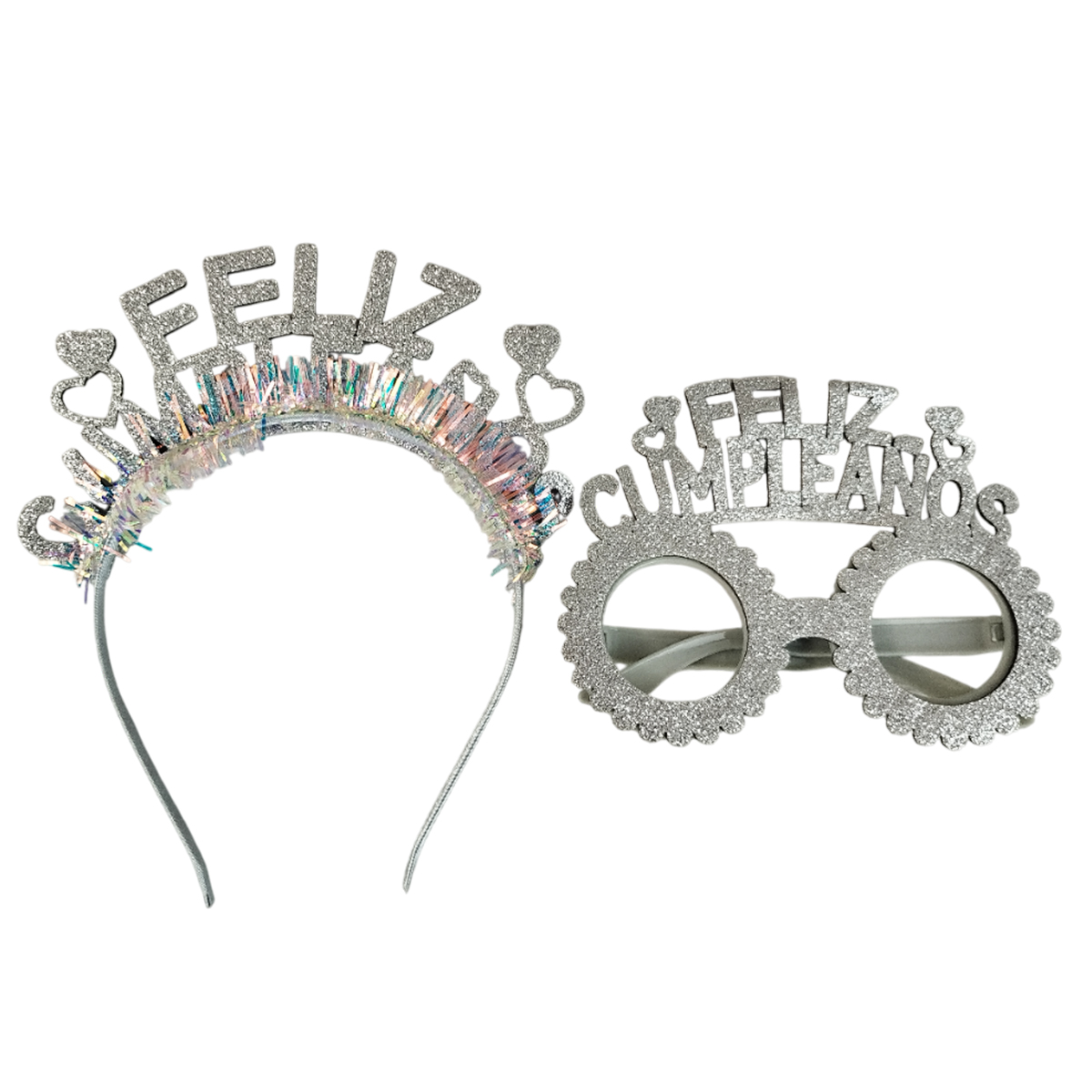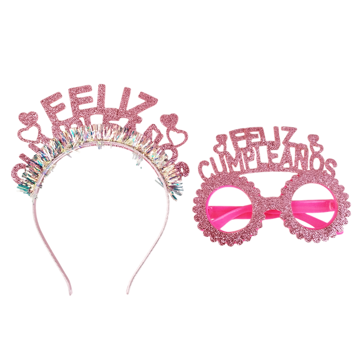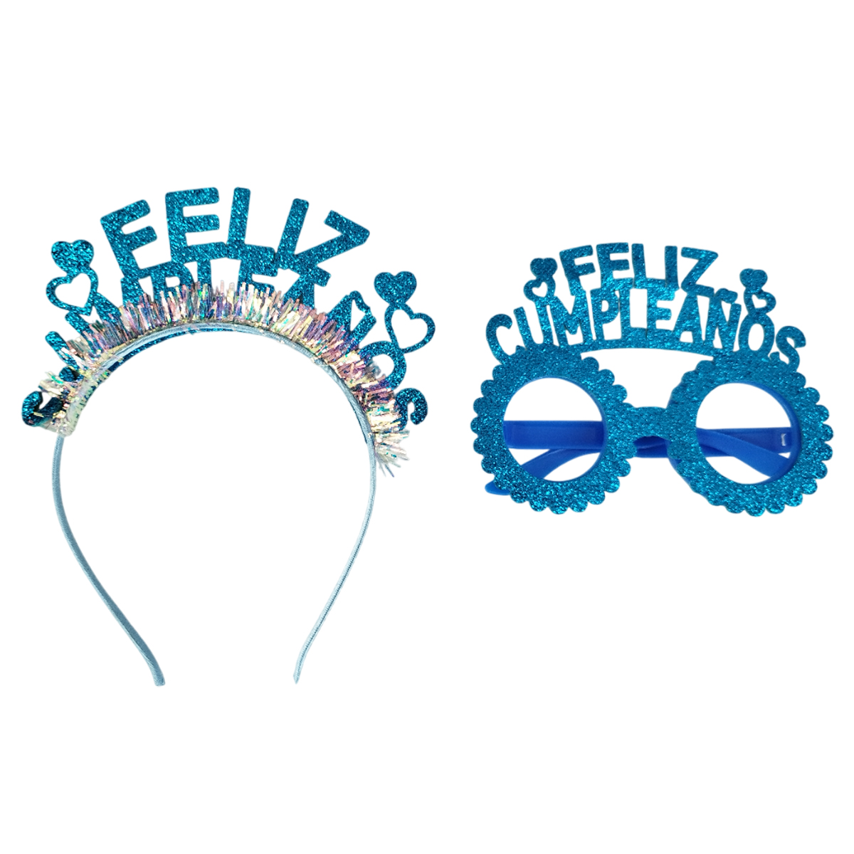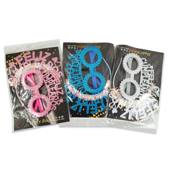 Adorno lentes y diadema de feliz cumpleaños, varios colores de 23×16