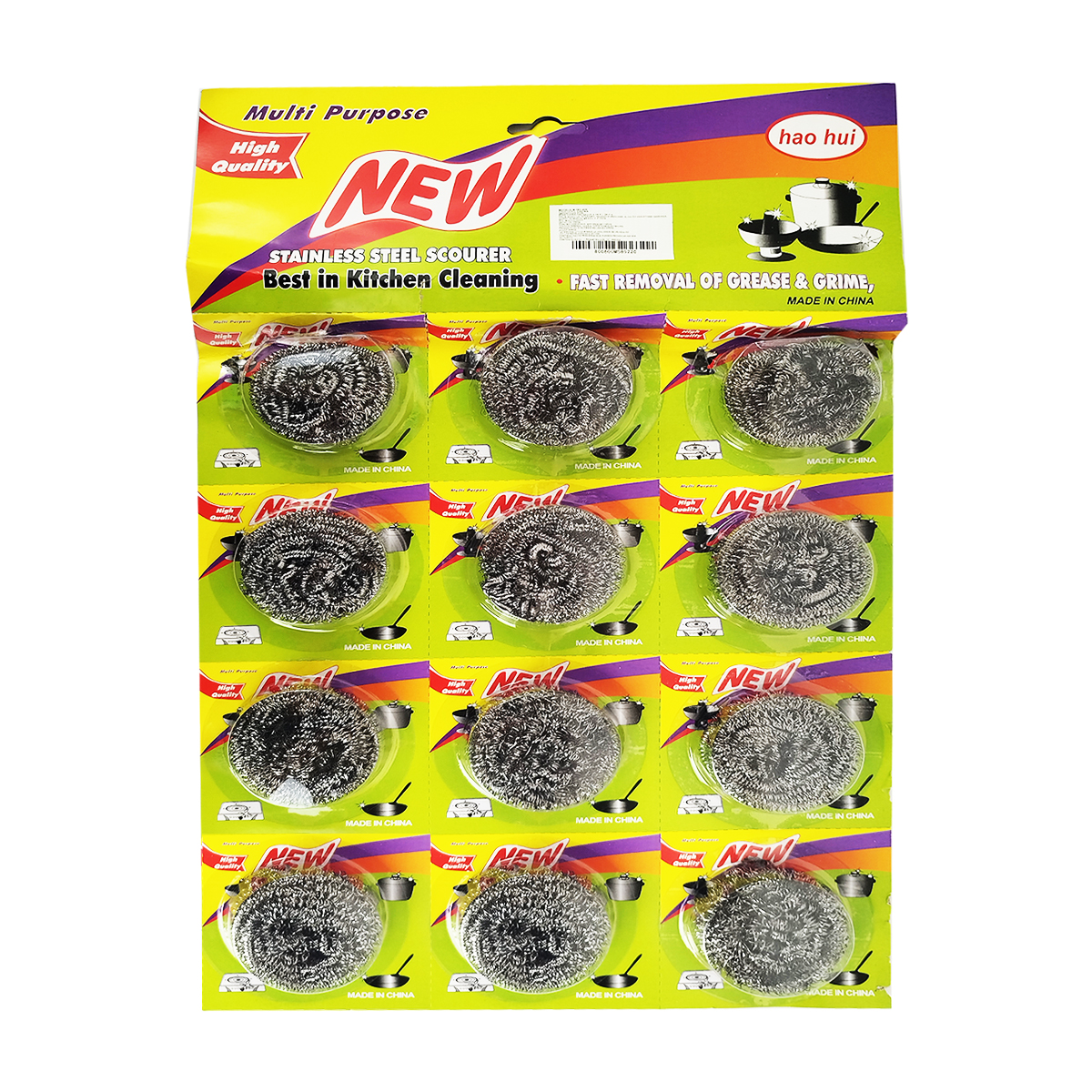 Blister de 12 fibras de metal para cocina.