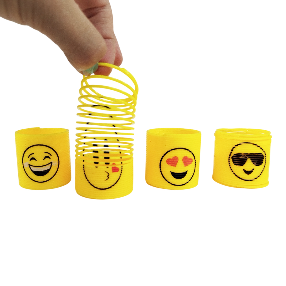 Blister de 12 pzs de gusano de resorte de juguete con figura de caritas de 14 x 11 x 4 cm