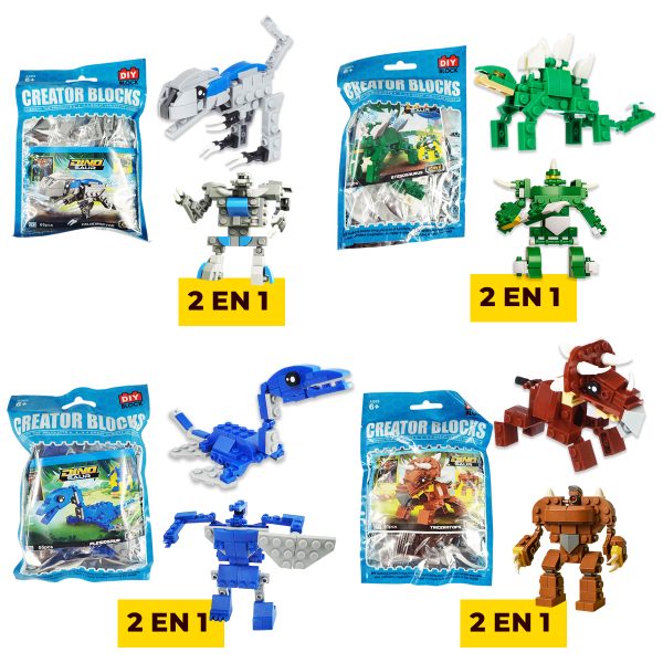 Bloques para armar con 65 pzs 2 en 1 de dinosaurio o transformer de 11.5 x 17.5 cm