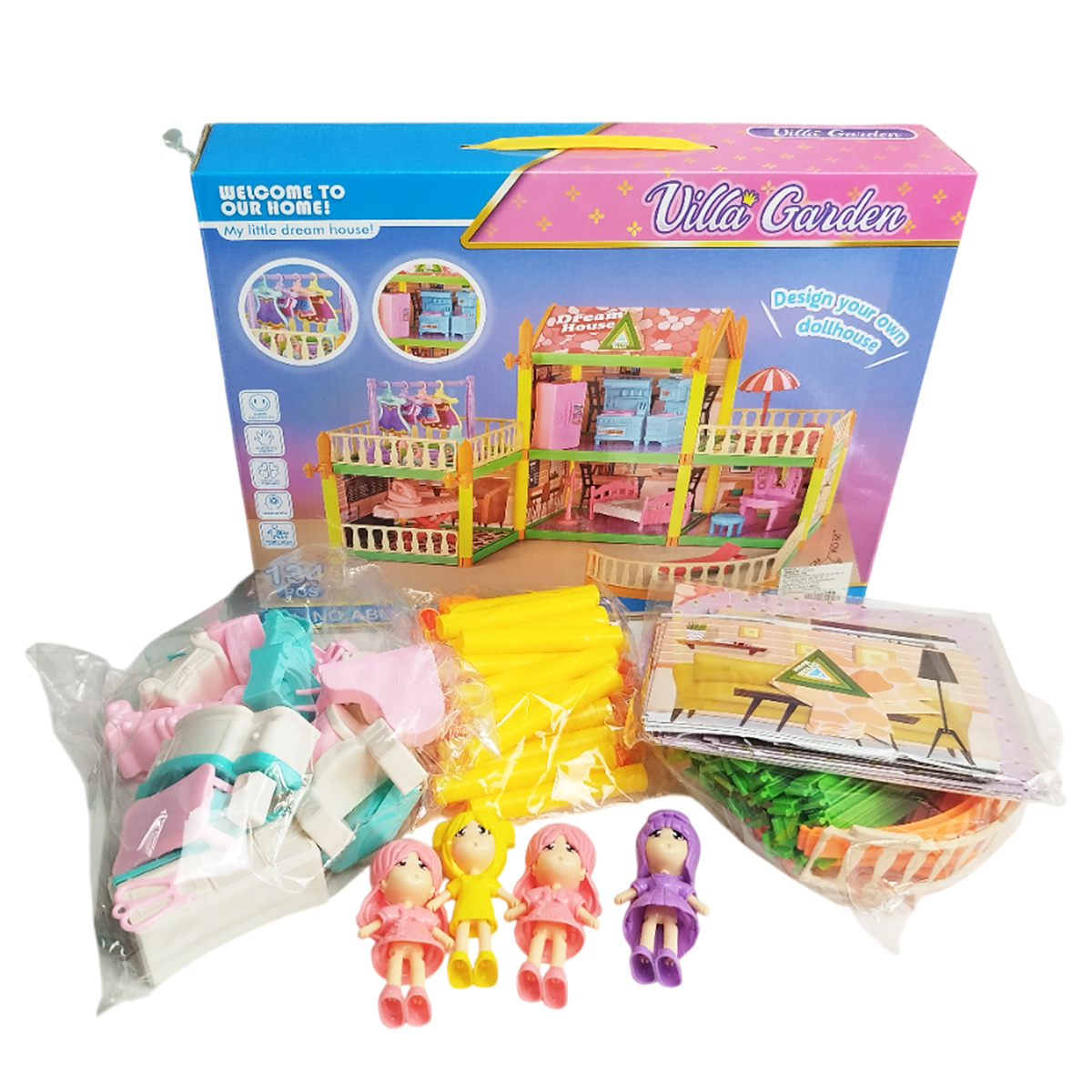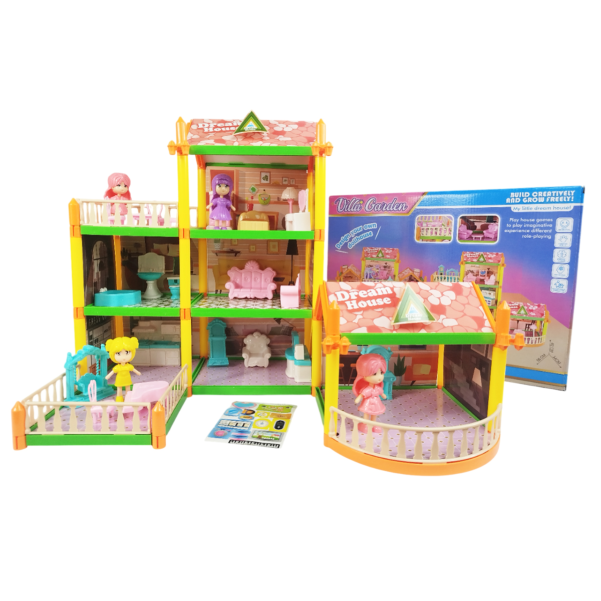 Casa de muñecas de tres pisos con accesorios y muebles incluye 154 pzs, dimensiones de 56 x 42 x 34 cm