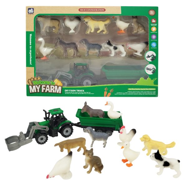 Juguete con animales de granja y un camion de granja incluye 10 animales de 26.5 x 19.5 x 5 cm