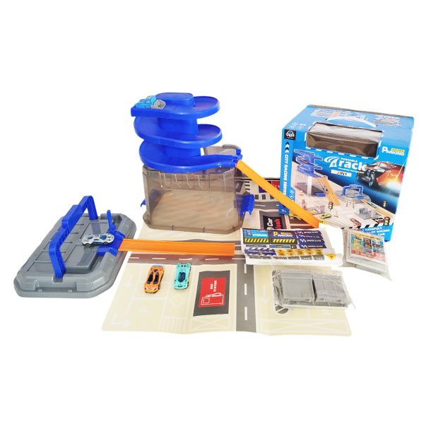 kit de pista de carreras de juguete de la serie “City Racing Series” incluye una pista portátil 2 en 1 con un estacionamiento Viene con un lanzador y un coche de carreras de aleación de de 28 x 24.5 x 21.5 cm