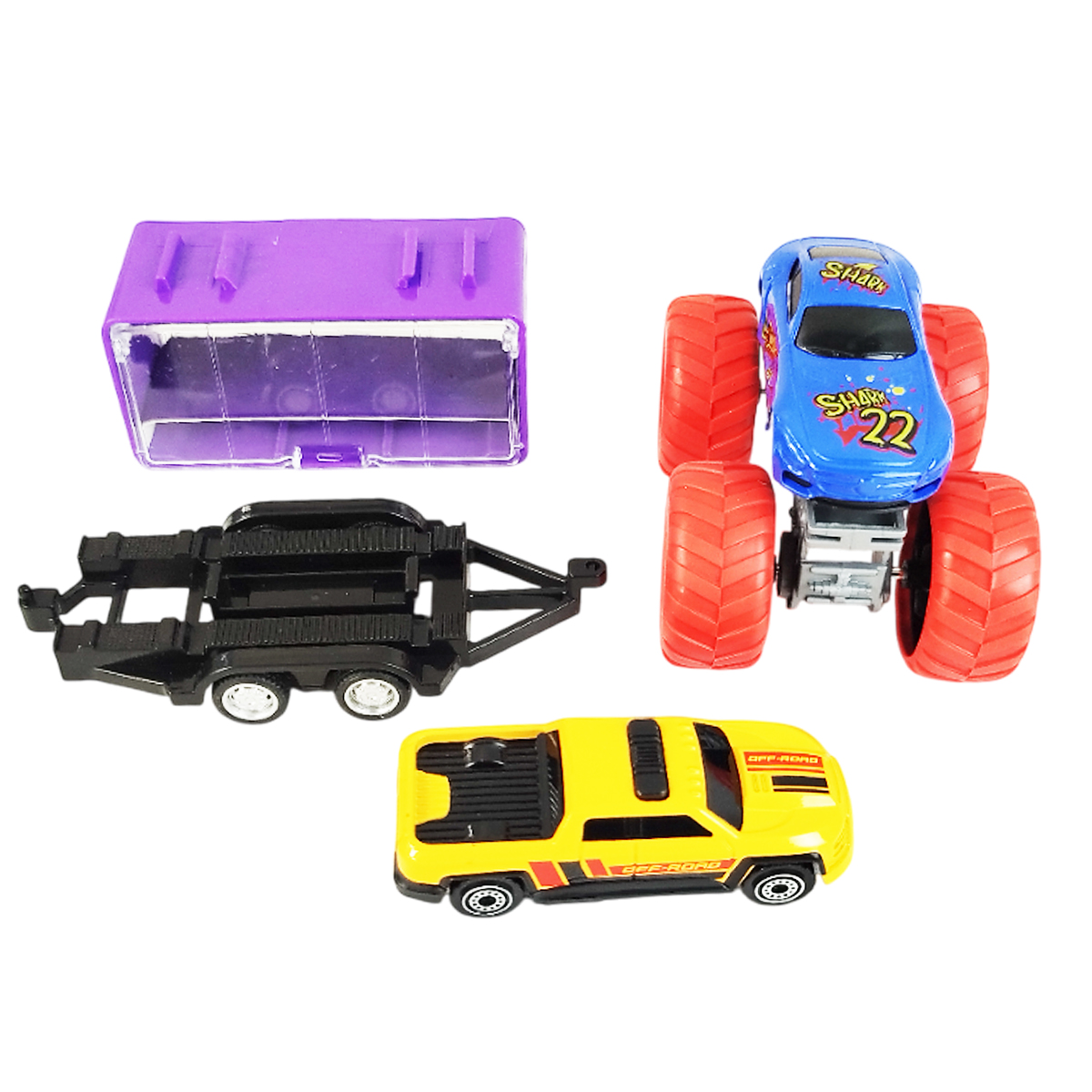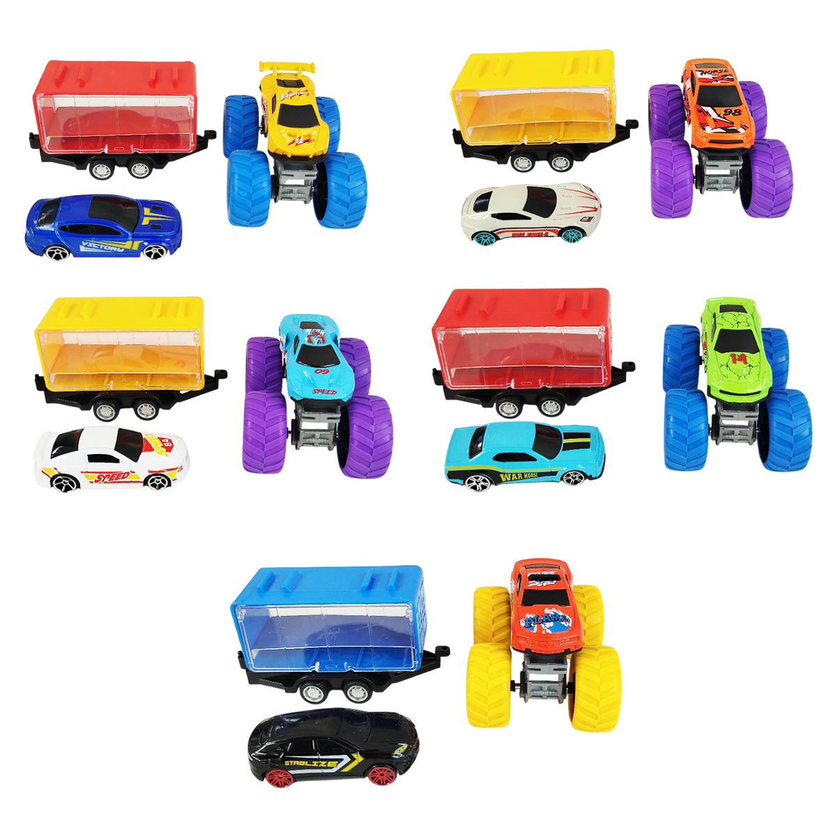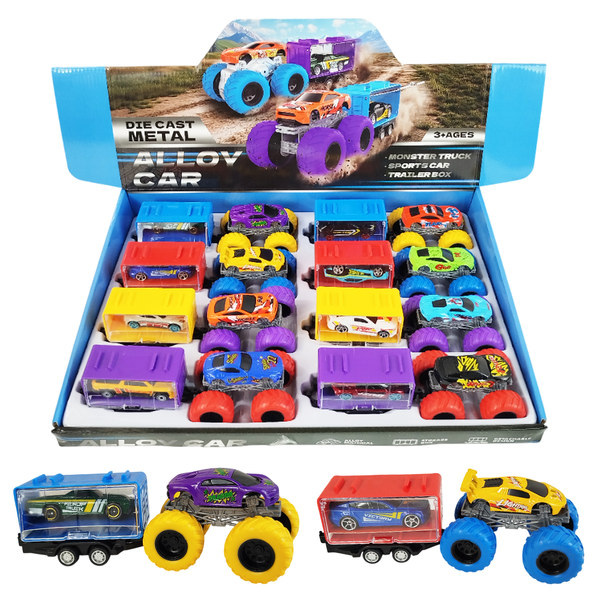 Monster Car diferentes colores con remolque que incluye auto adicional, 28x7x6.5