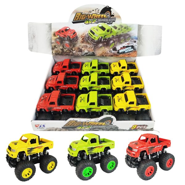 Monster truck de fricción de 12 x 9.5 x 10 cm 3 colores diferentes.