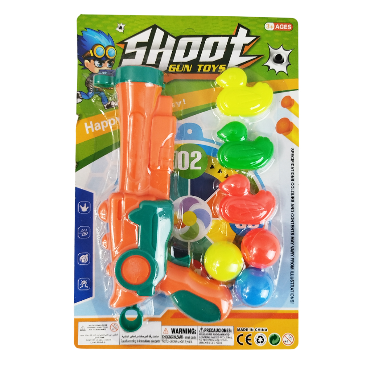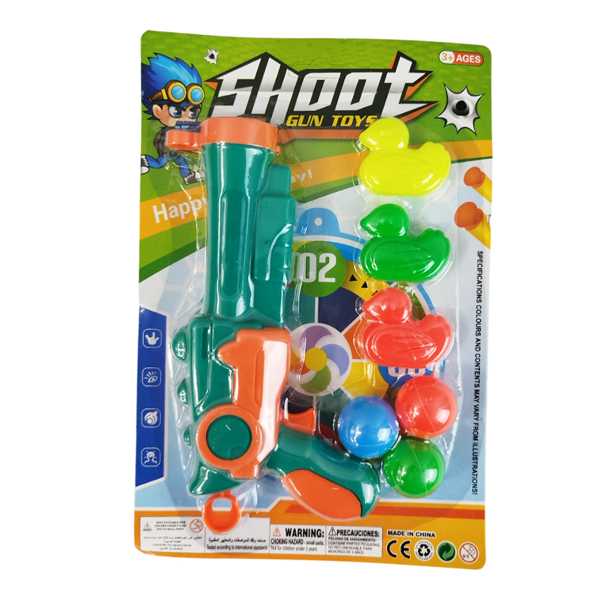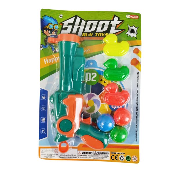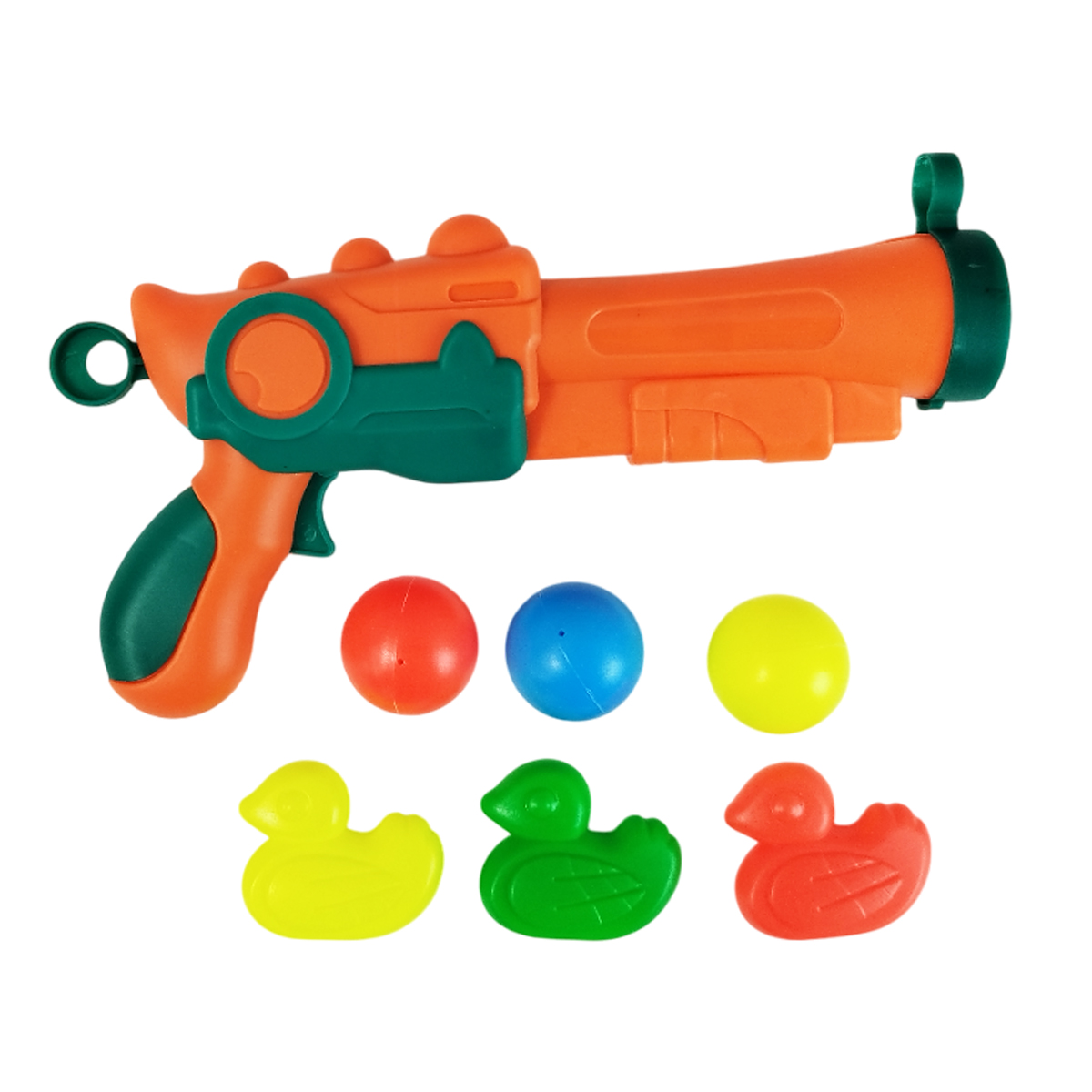 Pistola de 19 x 9 cm para lanzar pelotas y tirar patitos.