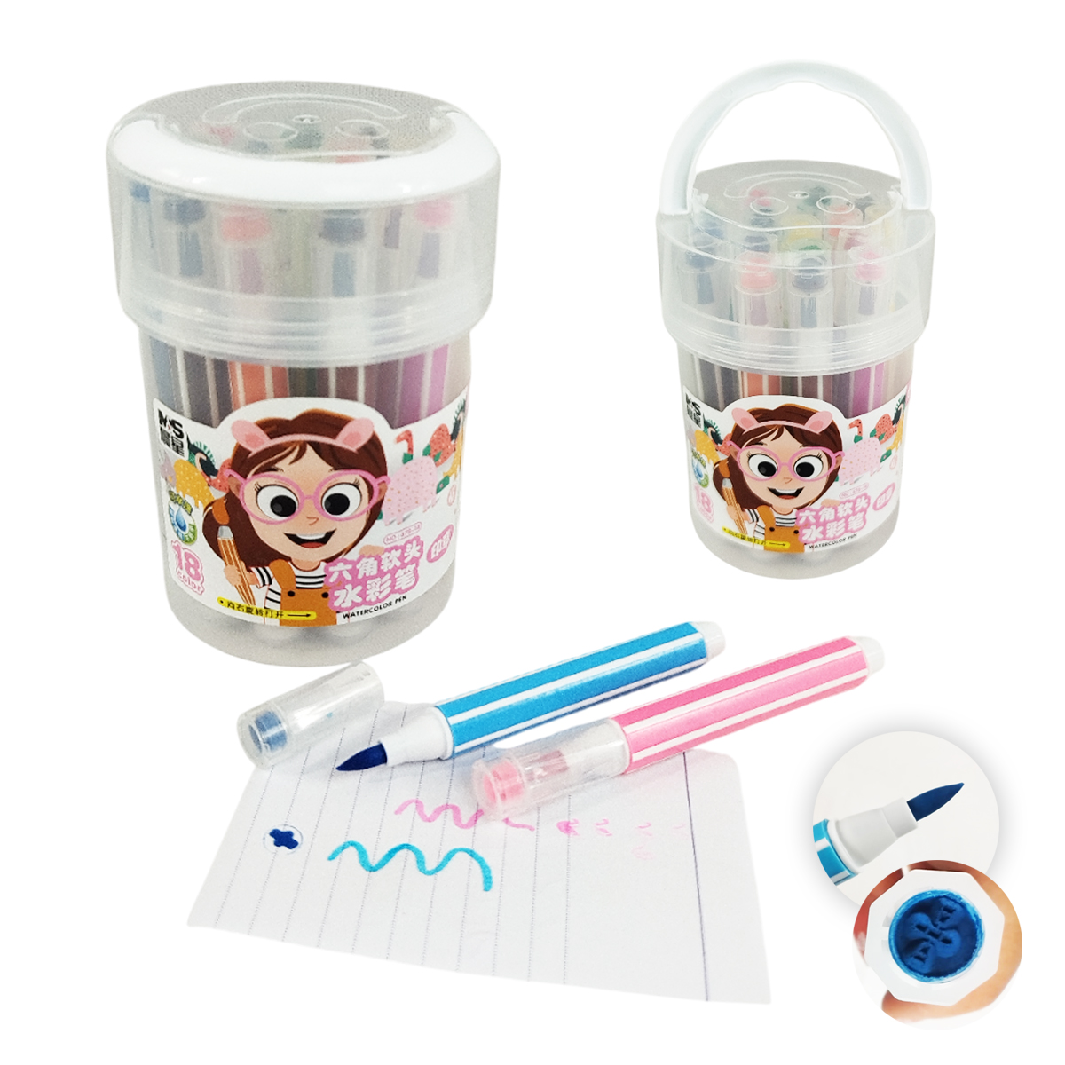 Set de 18 plumones de colores con envase con agarraderade 12 x 7.5 x 8.5 cm